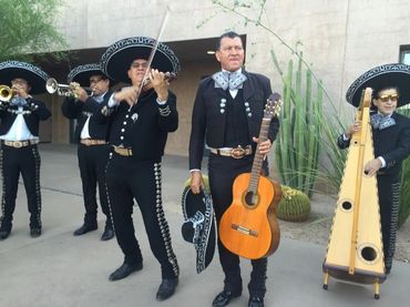We have over 40 years of performance experience in Arizona. Our Mariachi ensemble consists of experienced professional musicians. We offer a full 12 member Mariachi, as well as quartets, trios, or solos. We travel all over the state to entertain at weddings, quinceañeras, anniversaries, baptisms, serenades, Catholic masses, all kinds of events.